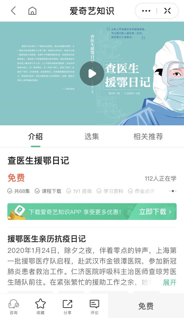 《查醫(yī)生援鄂日記》作者查瓊芳的同事、仁濟(jì)醫(yī)院南院急診團(tuán)支部書記、為數(shù)不多的男護(hù)士傅佳順告訴記者,正如查醫(yī)生在日記中所說,“這一切的一切,是歷史的定格,更是對(duì)生命的禮贊!每一個(gè)動(dòng)人的故事都是不朽的畫卷、動(dòng)聽的音符……這些普通人的故事一次次感動(dòng)著我,震撼著我?,F(xiàn)在聽書免費(fèi)上線了,可以讓更多的人聽到、感受到書中每一個(gè)存在過的故事,我想這也是查醫(yī)生寫這本書的初衷之一吧!”