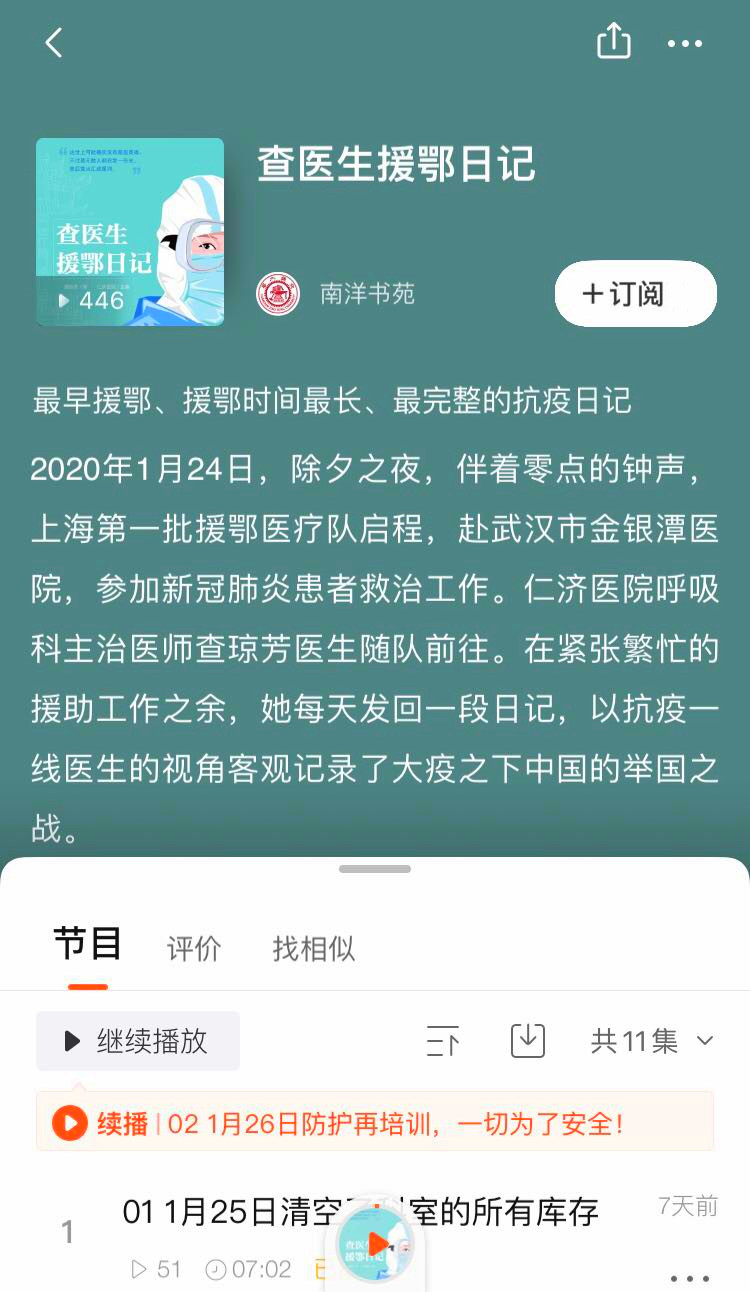 《查醫(yī)生援鄂日記》有聲書也獲得喜馬拉雅平臺(tái)支持。主播念念以清亮的聲音、飽滿的情緒進(jìn)行有聲演繹,呈現(xiàn)了最真實(shí)的“抗疫”故事,弘揚(yáng)主旋律,傳遞正能量。節(jié)目上線后深受用戶喜愛。同時(shí),喜馬拉雅通過打造“抗疫”專題、聯(lián)動(dòng)主播以及上下游生態(tài)合作伙伴,向用戶傳遞權(quán)威信息和可靠防護(hù)措施,助力抗擊新型肺炎疫情。截至目前,喜馬拉雅上疫情相關(guān)內(nèi)容播放量已經(jīng)超過8億。