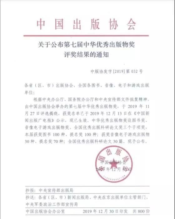 中華優(yōu)秀出版物獎、中國出版政府獎和“五個一工程”優(yōu)秀圖書為出版界三大獎。本屆中華優(yōu)秀出版物(圖書)獎共評選出圖書獲獎作品100種,另有100種圖書作品獲提名獎。
