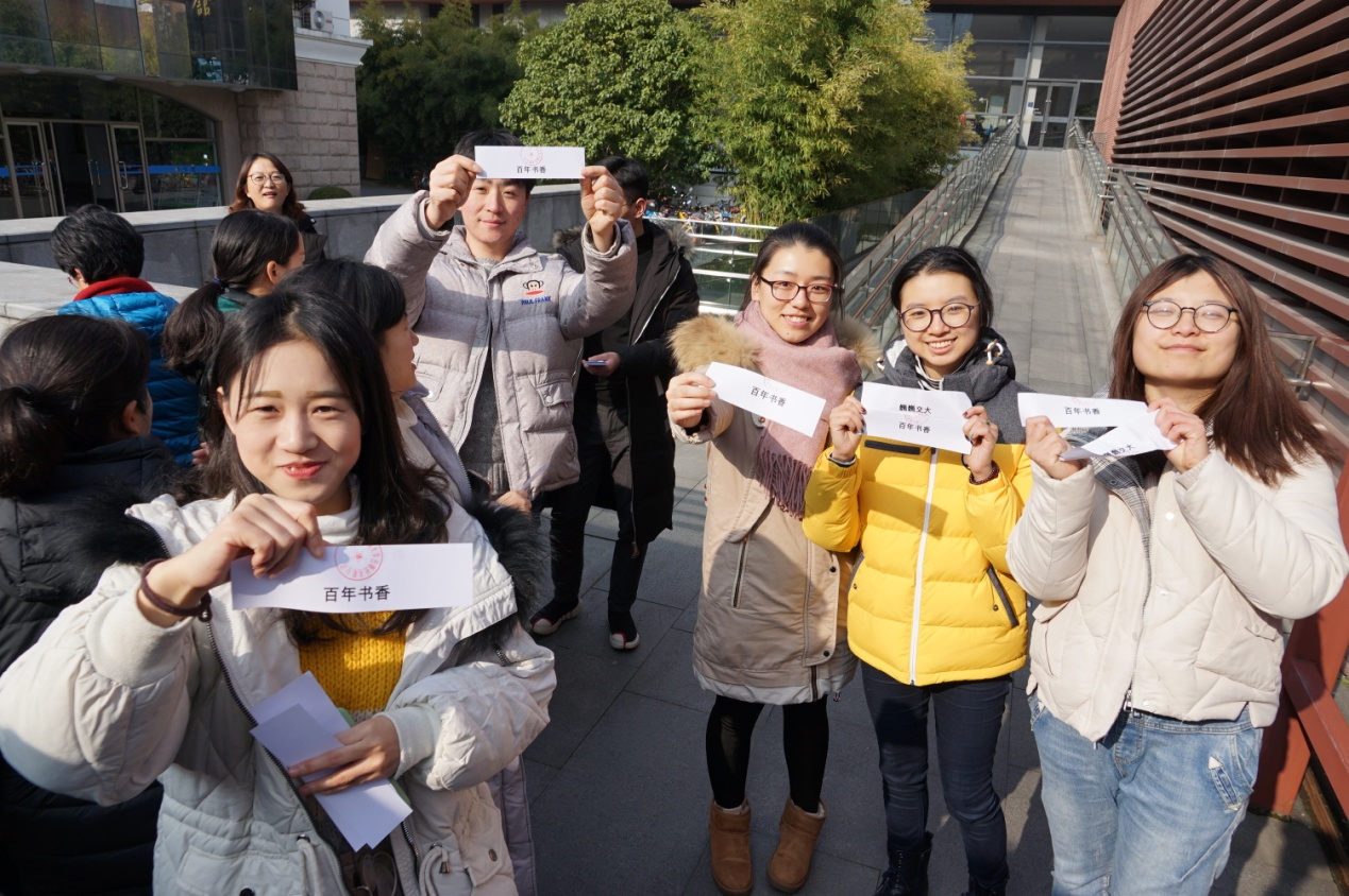 盡管寒氣襲人,但艷陽高照,全社員工們興致盎然,踴躍參與。12:15,大家在徐匯校區(qū)鄭堅固體育場集合并拍攝集體照。接著,大家跟隨著社旗的指引有序出發(fā)。活動共分三個打卡點,第一打卡點在鄭堅固體育場,打卡憑證為“巍巍交大”;第二打卡點在錢學森圖書館,打卡憑證為“百年書香”;第三打卡點在張元濟講堂,大家憑“巍巍交大、百年書香”兩張打卡憑證簽名領(lǐng)取完賽紀念品。