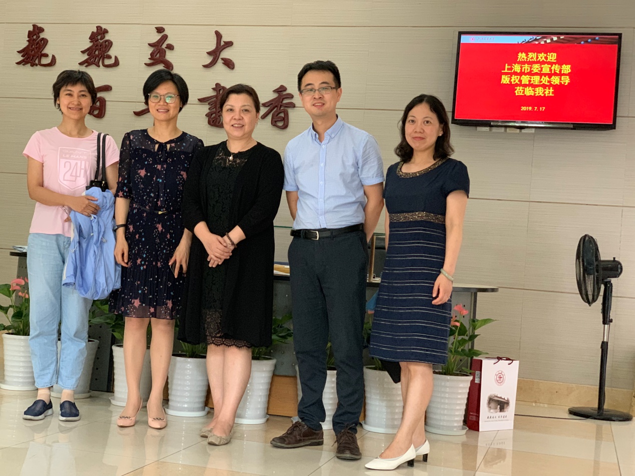 7月17日下午,上海市委宣傳部版權管理處處長薛彬、副處長戴怡、副調研員吳瑾君一行到我社調研版權貿易及“走出去”實踐工作,上海交通大學出版社社長李芳、社長助理兼國際合作部主任李旦及國際合作部全體人員參加了調研會議。