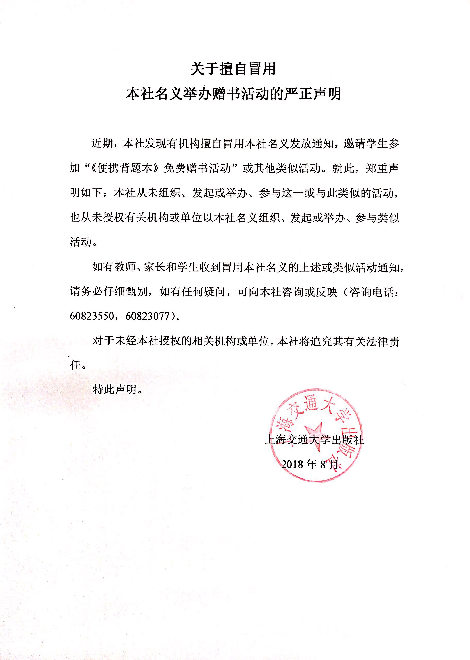 關(guān)于擅自冒用本社名義舉辦贈書活動的嚴(yán)正聲明