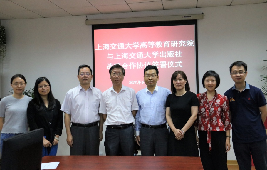 高教院院長劉念才、交大社總編輯李廣良代表雙方簽署協(xié)議。高教院教師劉莉、高艷、鄭天一,交大社副總編陳勤、原副總編郁金豹、編輯易文娟、國際合作部主任李旦等參加會(huì)談。