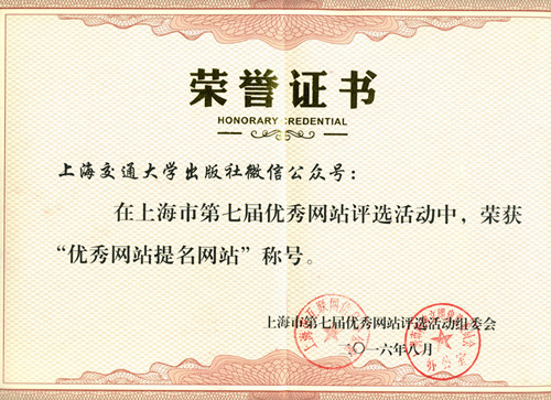 11月2日下午,在上海圖書(shū)館舉行了以“共建清朗互聯(lián)網(wǎng)空間”為主題的上海市第七屆優(yōu)秀網(wǎng)站表彰會(huì)。市委常委、宣傳部長(zhǎng)董云虎同志出席會(huì)議并講話(huà)。我社微信公眾號(hào)(sjtupress)榮獲上海市第七屆“優(yōu)秀網(wǎng)站提名獎(jiǎng)”稱(chēng)號(hào)。