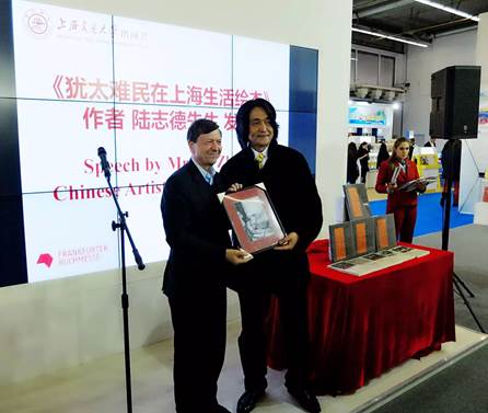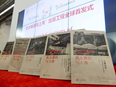 為紀(jì)念反法斯西戰(zhàn)爭(zhēng)勝利70周年,圍繞二戰(zhàn)中“猶太難民與上?!蹦嵌伍W爍人性光輝的歷史,上海交通大學(xué)出版社策劃出版了5卷本“猶太難民與上?!眳矔?,并于德國(guó)時(shí)間10月14日下午聯(lián)合上海猶太研究中心、荷蘭博睿(Brill)出版社,在法蘭克福書展上隆重舉行中國(guó)代表團(tuán)重要活動(dòng)——“猶太難民與上?!背霭婀こ倘蚴装l(fā)式。