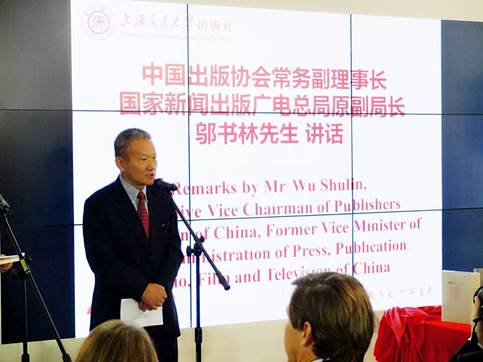 鄔書林、梁建全、皮特?科伯格、王健、劉佩英等嘉賓及歐洲上海社團(tuán)聯(lián)合會(huì)會(huì)長(zhǎng)龔禮明共同為新書揭幕。首發(fā)式由上海交通大學(xué)出版社國(guó)際部副主任李旦主持。