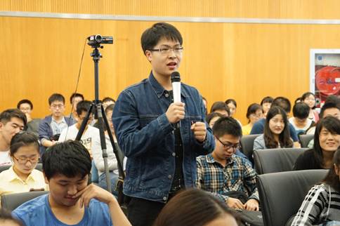 演講現(xiàn)場氣氛熱烈,不少同學(xué)慕名而來、席地而坐?;迎h(huán)節(jié),同學(xué)們踴躍提問。池永碩先生結(jié)合切身經(jīng)歷,就大學(xué)生職業(yè)選擇和規(guī)劃等問題與現(xiàn)場同學(xué)進行深入探討,鼓勵大學(xué)生們勇于嘗試、敢于失敗、不斷創(chuàng)新。