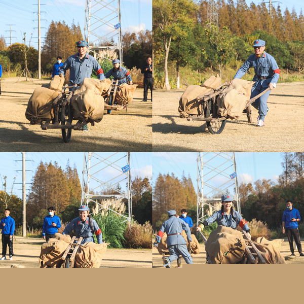 在“友誼第一、比賽第二”的掌聲歡呼聲中,現(xiàn)場組建的8支戰(zhàn)隊(duì)依次展示了隊(duì)名、隊(duì)旗、口號(hào)、隊(duì)歌、隊(duì)形。比賽在歡快氣氛中拉開帷幕,“朱德的扁擔(dān)”“支援前線”“手榴彈擲準(zhǔn)”“編草鞋”四個(gè)項(xiàng)目設(shè)計(jì)新穎、充滿趣味。由于每個(gè)項(xiàng)目必須有12人上場,要求每位隊(duì)員齊心協(xié)力、共同發(fā)揮團(tuán)結(jié)協(xié)作精神才能完成比賽,因此賽場上,全體員工團(tuán)結(jié)協(xié)作,你追我趕,比技術(shù)、比團(tuán)結(jié)、比友誼、比毅力,在運(yùn)動(dòng)中體驗(yàn)參與的快樂,在合作中感悟團(tuán)隊(duì)的力量。比賽中,加油聲、歡呼聲,笑聲和掌聲此起彼伏,場上場下互動(dòng)交流,既緊張興奮又輕松歡樂。