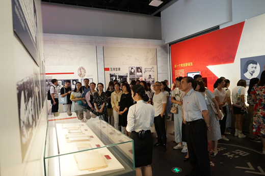 主題黨日活動中,黨員們來到閔行校區(qū)檔案文博大樓,參觀校史博物館、《紅星照我行——陳家泠革命圣地作品展》和黨史文獻實物展。