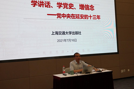 黨史學習教育專題黨課在包玉剛學術(shù)報告廳舉行,黨課由社長李芳主持。2021年7月1日上午8時,慶祝中國共產(chǎn)黨成立100周年大會在北京天安門廣場隆重舉行。中共中央總書記、國家主席、中央軍委主席習近平發(fā)表重要講話。為進一步學習領會習近平總書記重要講話的重大意義、科學內(nèi)涵、精神實質(zhì)、實踐要求,出版社黨委書記錢天東以“學講話 學黨史 增信念——黨中央在延安的十三年”為主題給全體出版社黨員上專題黨課。