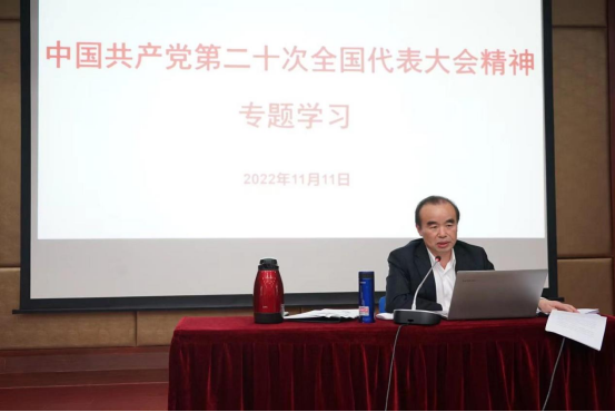 為深入學(xué)習(xí)宣傳貫徹落實(shí)黨的二十大精神,11月11日下午,出版社黨委書記錢天東為全體黨員作了《中國(guó)共產(chǎn)黨第二十次全國(guó)代表大會(huì)精神專題學(xué)習(xí)》的專題黨課。會(huì)議由出版社黨委副書記、紀(jì)委書記周鵬主持。