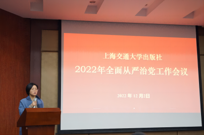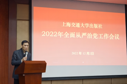 12月2日下午,出版社2022年全面從嚴(yán)治黨工作會議在張?jiān)獫?jì)講堂召開。社黨委書記錢天東作全面從嚴(yán)治黨工作報(bào)告。會議由黨委副書記、社長李芳主持。社班子成員、中層干部和支部班子成員參加會議并集體觀看了警示教育片。