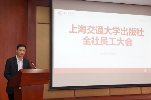 3月6日下午,上海交通大學(xué)出版社召開2023年度全社員工大會(huì)。董事長(zhǎng)、黨委書記錢天東,總編輯陳華棟等班子成員及出版社全體員工參加會(huì)議。會(huì)議由黨委副書記、紀(jì)委書記周鵬主持。