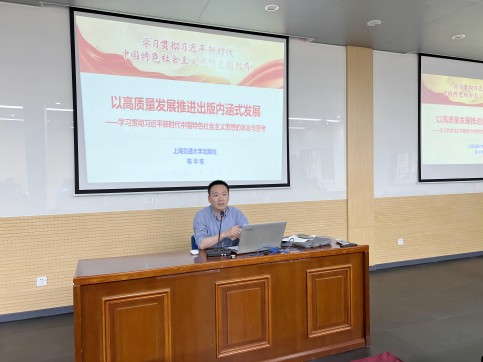 根據(jù)學(xué)校關(guān)于深入開展學(xué)習(xí)貫徹習(xí)近平新時代中國特色社會主義思想主題教育部署要求,6月1日下午,上海交通大學(xué)出版社黨委副書記、社長、總編輯陳華棟為出版社全體黨員講授“以高質(zhì)量發(fā)展推進出版內(nèi)涵式發(fā)展”專題黨課。黨委書記、董事長錢天東出席,本次黨課由黨委副書記、紀(jì)委書記周鵬主持,全體在職、退休黨員及入黨積極分子共計70人參加學(xué)習(xí)。