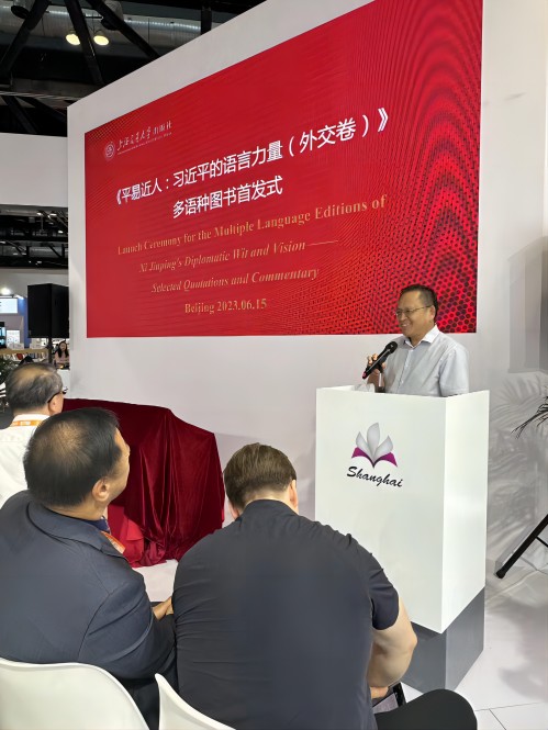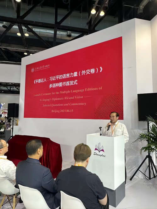 2023年6月15日,在中國(guó)出版協(xié)會(huì)、中國(guó)國(guó)際問(wèn)題研究院的指導(dǎo)支持下,由上海交通大學(xué)出版社舉辦的《平易近人:習(xí)近平的語(yǔ)言力量(外交卷)》多語(yǔ)種圖書(shū)首發(fā)儀式在第二十九屆北京國(guó)際圖書(shū)博覽會(huì)(BIBF)舉辦。中國(guó)出版協(xié)會(huì)理事長(zhǎng)鄔書(shū)林,中國(guó)國(guó)際問(wèn)題研究院前院長(zhǎng)、黨委書(shū)記蘇格,中國(guó)新聞出版研究院院長(zhǎng)魏玉山,中國(guó)出版協(xié)會(huì)常務(wù)副秘書(shū)長(zhǎng)吳寶安,中國(guó)國(guó)際問(wèn)題研究院圖書(shū)館館長(zhǎng)沈中明,上海市委宣傳部版權(quán)管理處處長(zhǎng)趙靖,上海交通大學(xué)出版社黨委書(shū)記、董事長(zhǎng)錢天東,社長(zhǎng)、總編輯陳華棟等出席儀式。首發(fā)儀式由陳華棟主持。