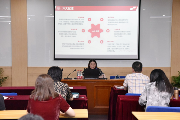 為落實學校關(guān)于深入開展黨紀學習教育的部署要求,按照出版社黨委工作安排,6月11日上午,出版社黨委副書記、社長、總編輯陳華棟以《提高政治站位,加強學習教育,深刻領會〈中國共產(chǎn)黨紀律處分條例〉的意義與內(nèi)涵》為題、財務總監(jiān)周洋以《〈中國共產(chǎn)黨紀律處分條例〉——違反群眾紀律的解讀》為題、第一黨支部書記錢方針以《以紀律為綱 為出版系扣》為題講授了專題黨課。本次黨課由錢方針主持,第一黨支部全體黨員、聯(lián)系黨小組、入黨積極分子等40余人參加學習。