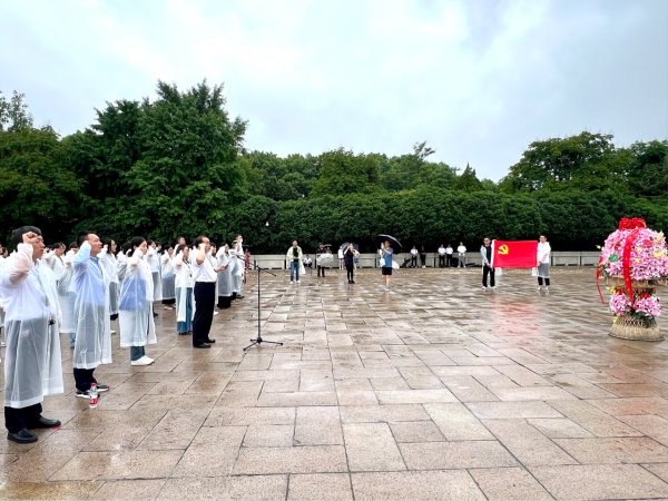 巍巍青山,英魂永駐,信仰如炬,大道遠行。煙雨迷蒙中,大家走進雨花臺烈士陵園,聆聽著先烈們奮勇當先的故事,感受著他們不怕犧牲、以身報國的精神,一路行至雨花臺紀念碑。在莊嚴肅穆的紀念碑前,全體黨員靜默瞻仰,向革命先輩憑吊獻花。在黨委書記錢天東的帶領下,鄭和福、楊其帆兩位預備黨員進行入黨宣誓,其他黨員重溫入黨誓詞,信仰的力量再一次激蕩在每一位黨員的心中。