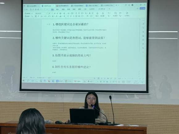 孔戎圍繞圖書(shū)網(wǎng)頁(yè)信息呈現(xiàn)中會(huì)遇到的高頻問(wèn)題展開(kāi)了分享。“哪些關(guān)鍵詞是會(huì)被屏蔽的”“哪些關(guān)鍵詞是熱搜詞,能夠被排到前面”“拍圖書(shū)展示視頻的用處大嗎”“制作宣傳詳情頁(yè)有哪些建議”“我們上傳的圖書(shū)打包文件中有樣章,為什么網(wǎng)站上沒(méi)有”,這些具象的問(wèn)題讓在場(chǎng)編輯對(duì)于如何做好基礎(chǔ)文案有了更深刻的認(rèn)識(shí),也對(duì)圖書(shū)線上宣傳的門(mén)道有了更多了解。