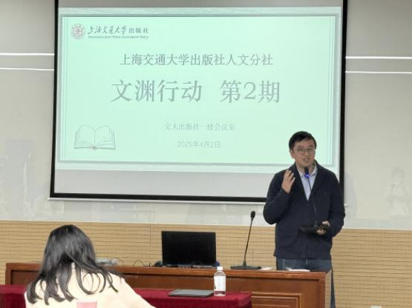 4月2日下午,上海交通大學(xué)出版社人文社科分社第2期“文淵行動(dòng)”在物資樓一樓會(huì)議室順利開(kāi)展。為加強(qiáng)編輯與營(yíng)銷(xiāo)人員的對(duì)接,增進(jìn)編輯對(duì)圖書(shū)后期推廣的深入了解,促進(jìn)編發(fā)融合,本次活動(dòng)邀請(qǐng)了營(yíng)銷(xiāo)中心的孔戎和高帆,請(qǐng)他們與各位編輯交流營(yíng)銷(xiāo)經(jīng)驗(yàn),活動(dòng)由人文社科分社副社長(zhǎng)趙斌瑋主持。