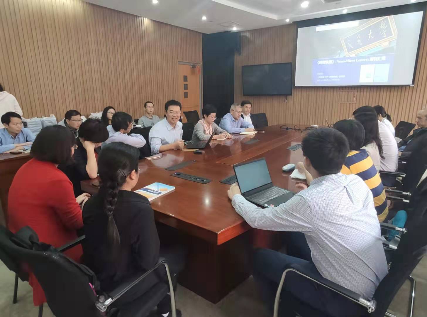 10月22日上午,調(diào)研組赴電子信息與電氣工程學(xué)院進(jìn)行調(diào)研?!禢ano-Micro Letters》作為一本影響因子已達(dá)9.043的優(yōu)質(zhì)期刊,其主編張亞非和編輯部主任張麗英分享了辦刊經(jīng)驗(yàn)及過(guò)程中遇到的困難。隨后,計(jì)算機(jī)、微納、自動(dòng)化、網(wǎng)安、電氣、儀器等專業(yè)負(fù)責(zé)人都逐一交流了目前辦刊的需求及存在的難題,期刊中心日后將盡快從考核、辦刊指導(dǎo)、刊群集約化管理等方面做出努力,為學(xué)校期刊建設(shè)打造一個(gè)良好的平臺(tái)。
