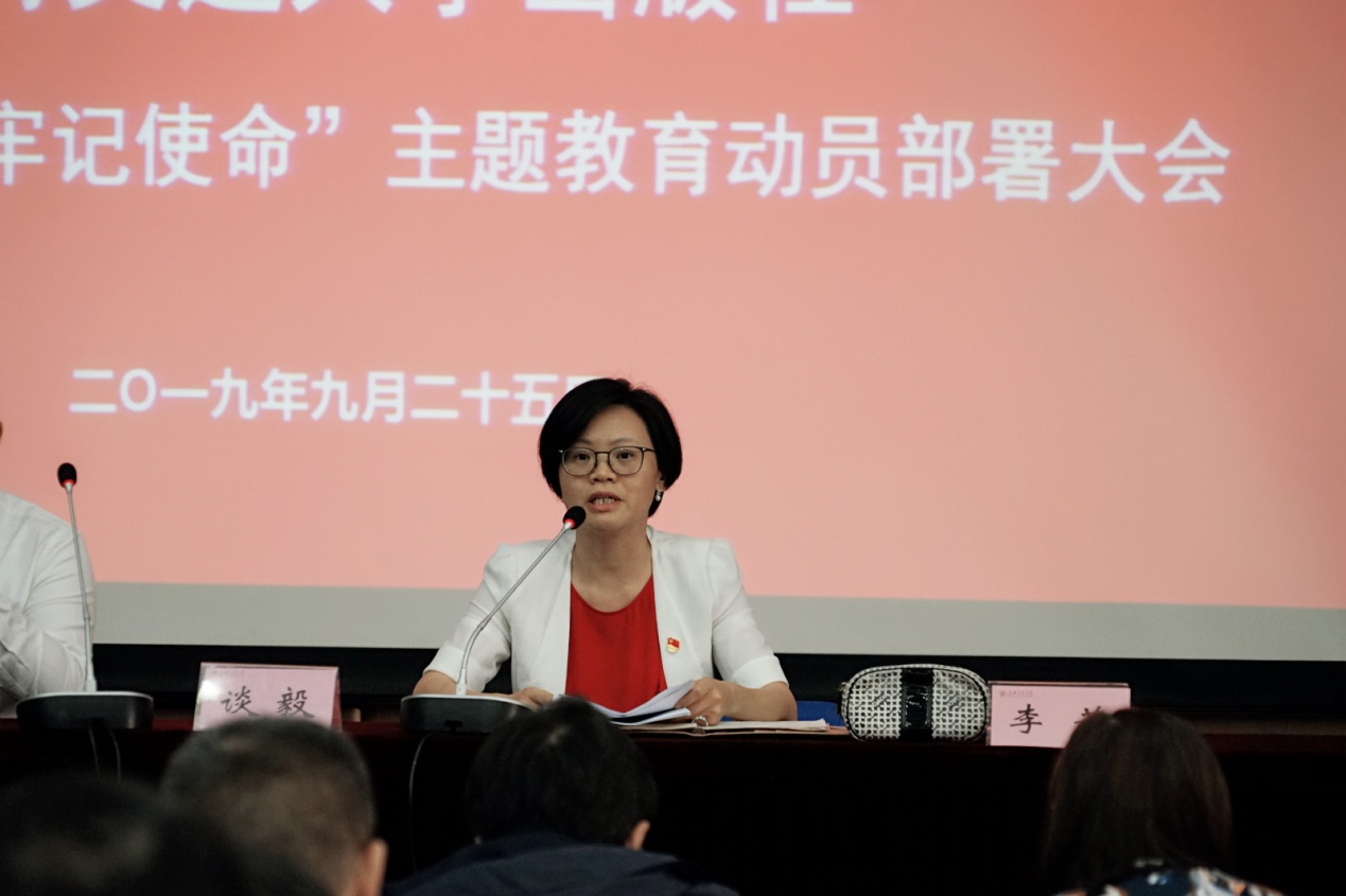 談毅從重大意義、目標(biāo)要求、重點(diǎn)措施、組織領(lǐng)導(dǎo)等四個方面?zhèn)鬟_(dá)了學(xué)校黨委“不忘初心、牢記使命”主題教育活動的工作部署。他指出,要明確一個根本任務(wù)和主線,就是深入學(xué)習(xí)貫徹習(xí)近平新時代中國特色社會主義思想;要把握一個總要求,就是守初心、擔(dān)使命,找差距、抓落實(shí);要堅(jiān)持抓好四個到位,就是抓思想認(rèn)識到位、抓檢視問題到位、抓整改落實(shí)到位、抓組織領(lǐng)導(dǎo)到位,以徹底的自我革命精神解決違背初心和使命的各種問題;要達(dá)到一個目標(biāo),就是實(shí)現(xiàn)理論學(xué)習(xí)有收獲、思想政治受洗禮、干事創(chuàng)業(yè)敢擔(dān)當(dāng)、為民服務(wù)解難題、清正廉潔作表率。主題教育的特點(diǎn)是四個重要措施不劃階段、不分環(huán)節(jié),把學(xué)習(xí)教育、調(diào)查研究、檢視問題、整改落實(shí)四項(xiàng)舉措有機(jī)融合、貫穿始終。要組織黨員個人自學(xué),原原本本通讀《習(xí)近平關(guān)于“不忘初心、牢記使命”論述摘編》,重點(diǎn)學(xué)習(xí)習(xí)近平新時代中國特色社會主義思想和“不忘初心、牢記使命”主題教育部署要求,通過學(xué)習(xí)教育使黨員不斷有新進(jìn)步新領(lǐng)悟,不斷增強(qiáng)黨性、提高素質(zhì)。