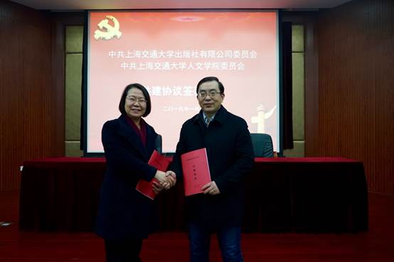 2019年1月15日上午,中共上海交通大學(xué)出版社有限公司委員會與中共上海交通大學(xué)人文學(xué)院委員會在上海交通大學(xué)出版社張元濟講堂舉行黨建共建簽約儀式,雙方圍繞更好地宣傳黨的路線、方針和政策,弘揚社會主義核心價值觀,開展黨建工作,黨委之間、支部之間、出版成果寫作之間,打造實習(xí)生基地等內(nèi)容進(jìn)行合作與探討。