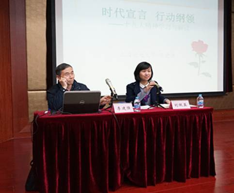 為進一步學習貫徹黨的十九大精神,11月29日下午,出版社黨委邀請原校黨委常委李建強教授為出版社全體黨員、入黨積極分子宣講黨的十九大精神,出版社社長、總編輯、黨委副書記劉佩英主持報告會。