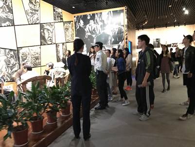 團員邊走邊看,墻壁上的塑料展示窗里,嵌著魯迅先生曾今發(fā)表的一本又一本的著作。老照片、舊報紙,魯迅生前用過的矽肺器、座椅、書桌、粘有他胡須的易容面具,蠟像、畫像、映像,魯迅紀念館的陳列的歷史文物,為參觀者營造了極好的氛圍,在這樣的環(huán)境下,我們似乎離魯迅先生更近了,離他那風華絕代的文人藝術更近了。參觀魯迅紀念館,讓團員們感受到,歷史是由人組成的,是由個體生命的精神與實踐組成的,只有每一位青年緊靠時代,將自己投入自身所處的時代并反思時代,像魯迅先生一樣,頌贊光明,鞭撻黑暗,我們的時代便就是最好的時代。