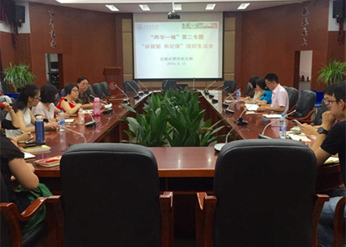編委會主任張?zhí)煳到o第四黨支部上專題黨課