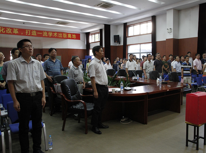 在高昂、嘹亮的國(guó)際歌聲中,中共上海交通大學(xué)出版社黨員大會(huì)圓滿結(jié)束。